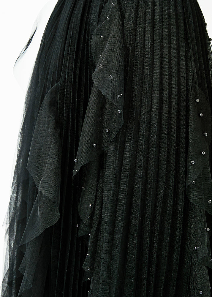 Classy Black Elastic Waist Ruffles Nail Bead Tulle Beach Skirts Summer