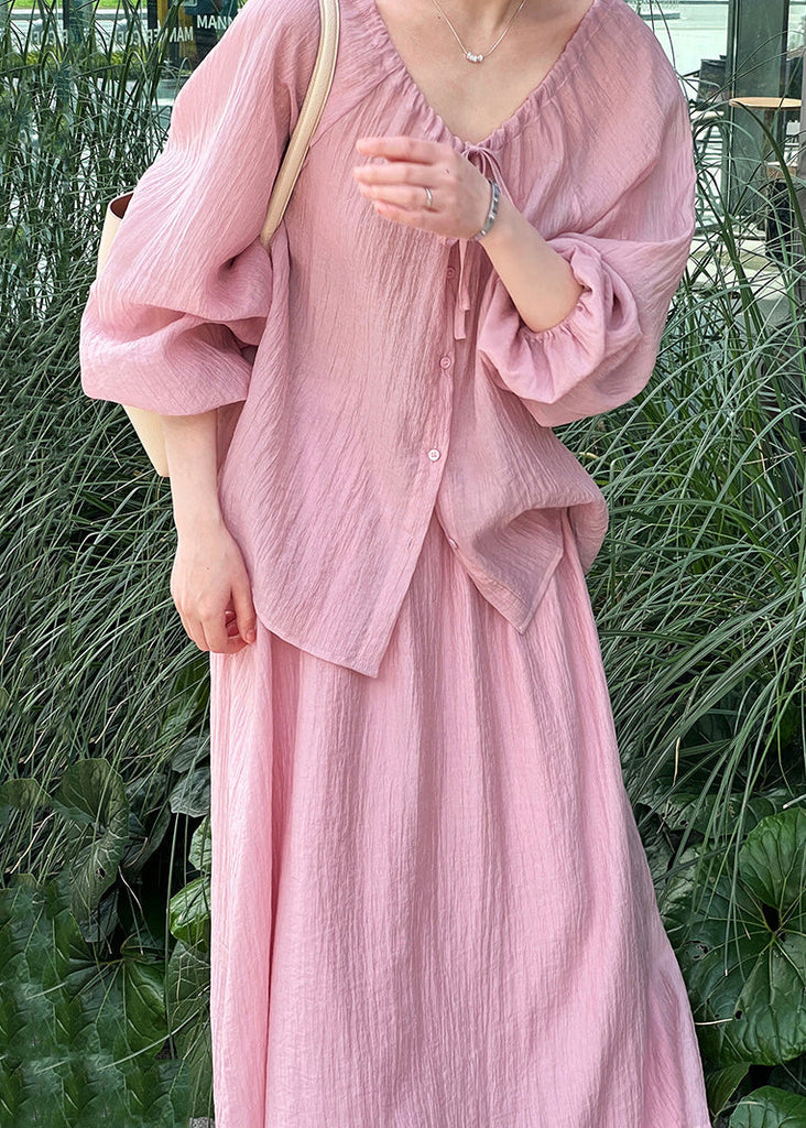 French Yellow Lace Up Tops And Skirts Cotton Two Pieces Set Spring Fabric: Cotton Blended Size & Fit: Fit: This garment fits true to size. Length: Size 2XL measures 23.79"from shoulder to hem Bust: Great for any cup size. Waist: Loose Fit. Comfortable room throughout midsection. Hip: Loose Fit - room for hips. Hand Wash Cold.