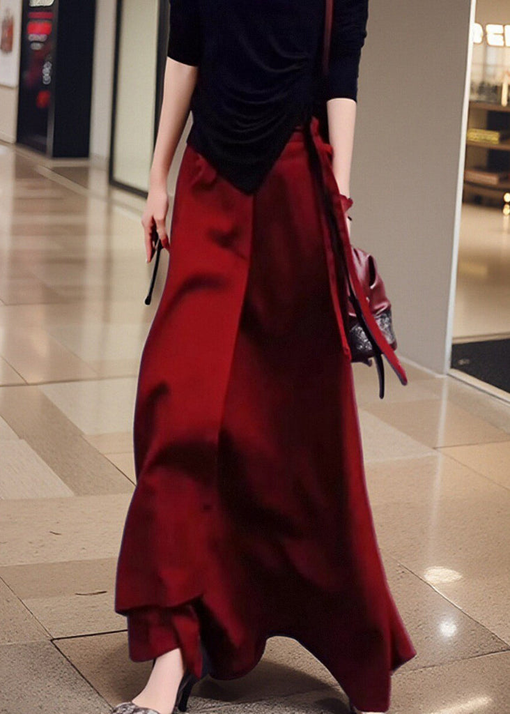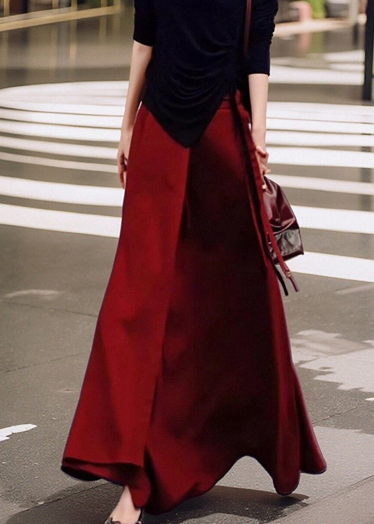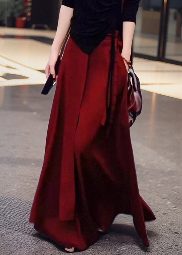 Loose Red Lace Up Pockets High Waist Skirt Summer