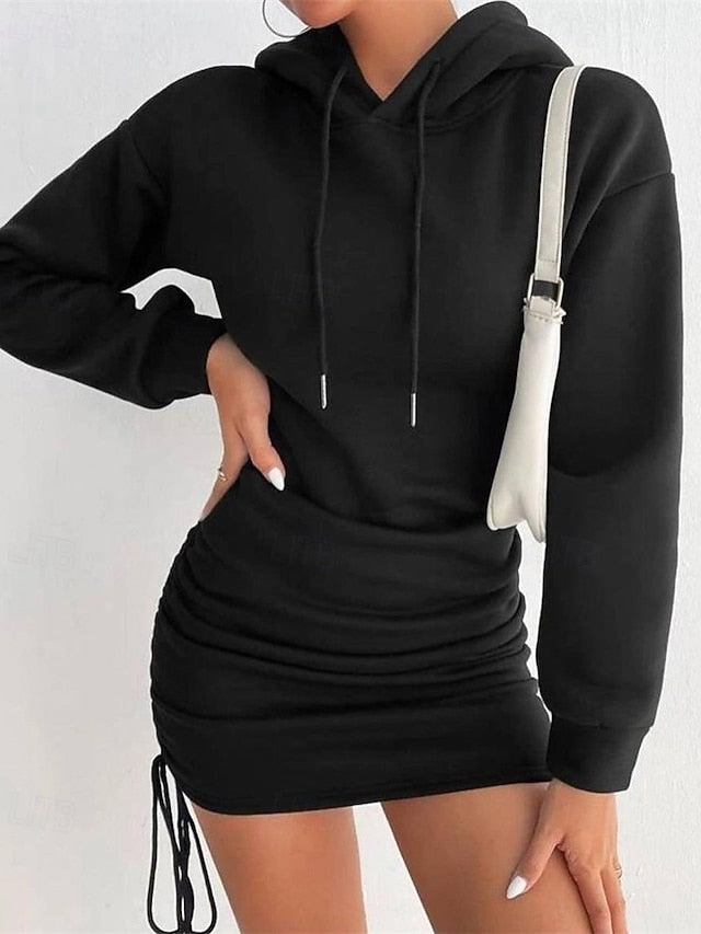 Dresses Type: Hoodie Dress, Casual Dress, Bodycon, Fabric: Polyester, Gender: Women's, Design: Drawstring, Occasion: Daily, Outdoor, Weekend, Style: Fashion, Modern, Fit Type: Regular Fit, Dress Length Type: Mini Dress, Neckline: Hooded, Sleeve Length: Long Sleeve, Elasticity: Micro-elastic, Look After Me: Machine wash, Pattern: Plain, Season: Fall, Spring,