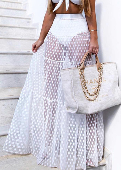 Introducing the luxurious New Black Dot Elastic Waist Tulle Swimwear Skirts for the stylish and sophisticated customer. This exclusive summer essential exudes elegance and taste, featuring a sophisticated black dot design and an elastic waist. Perfect for those who appreciate high-quality, premium fashion. Fabric: Tulle Size & Fit: This garment fits true to size. Length: Size XL measures 39"from waist to hem. Waist:Fitted - elastic waist allows stretch Hip: Loosely Fitted. room for hips. Hand Wash Cold.