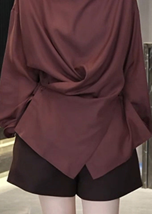 Organic Rust O Neck Front Open Cotton Shirts Top Fall QL053