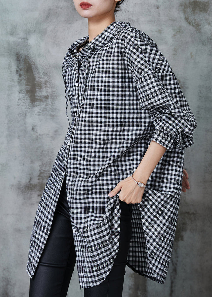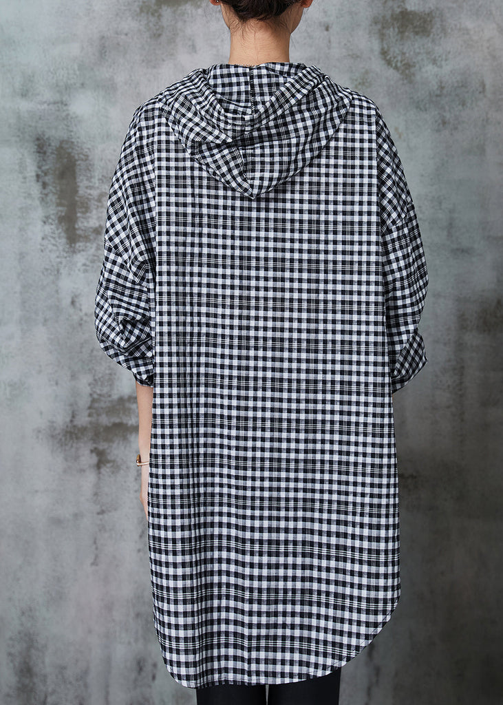 Imagine if you could be satisfied and content with your purchase. That can very much be your reality with the Boho Grey Hooded Plaid Linen Long Shirt Summer AL1018.
