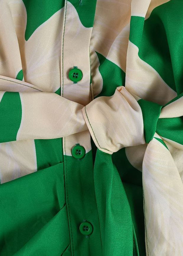 Novelty Yellow Print Tie Waist Cotton Shirts Dress Summer