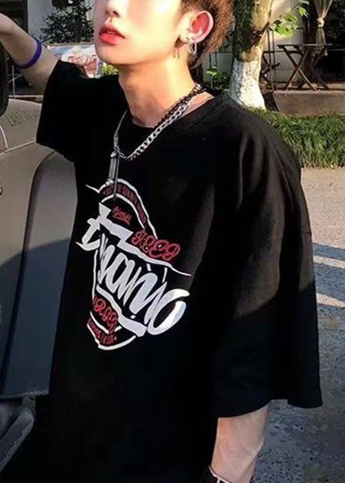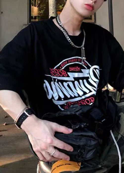 White Letter Cozy Cotton Men T Shirt O Neck Summer