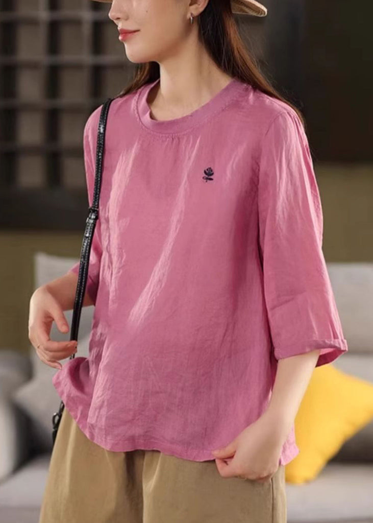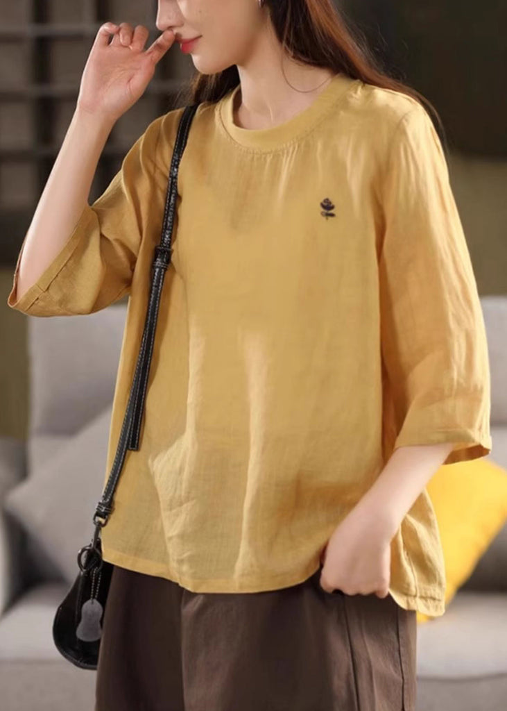 Green Half T Print Sleeve Cozy Linen O Shirt Neck