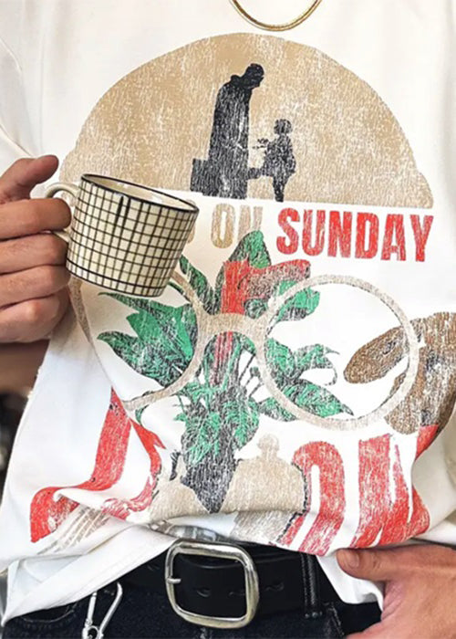Neck Print T Cotton White Shirts Summer Modern Letter O FashionChic