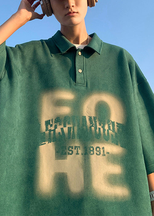 French Apricot Print Oversized Cotton Men Polo Shirts Half Sleeve