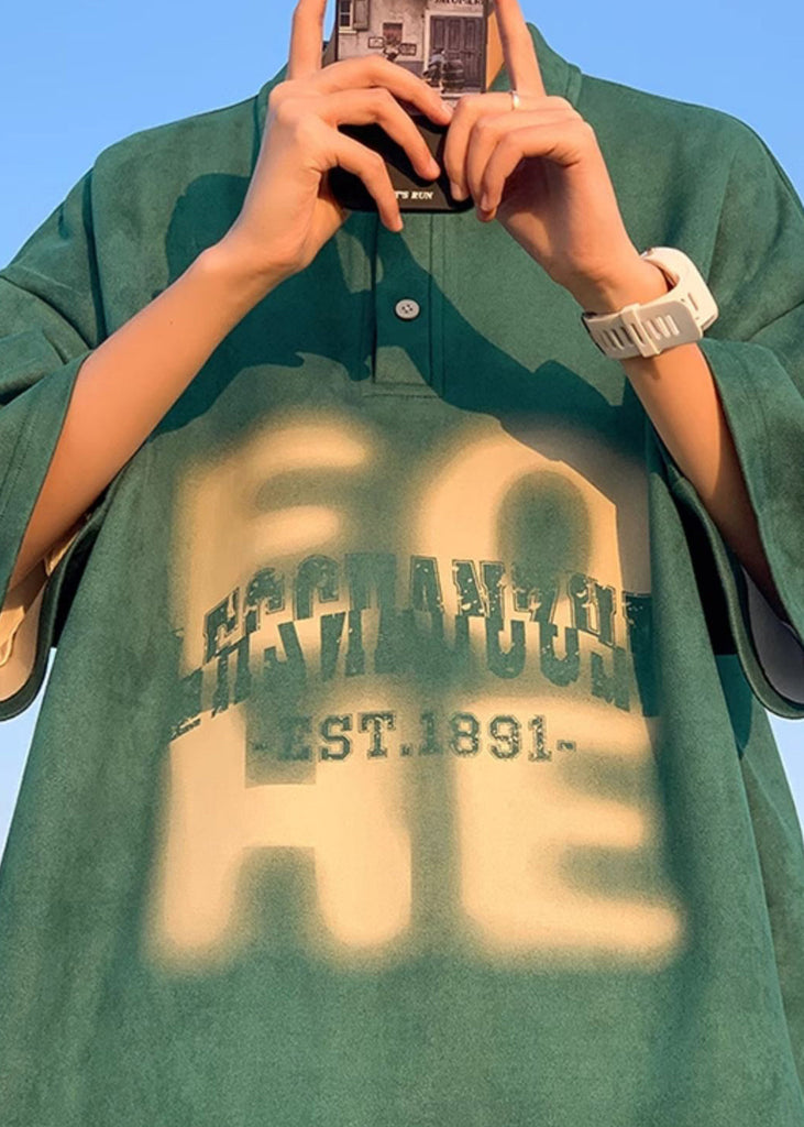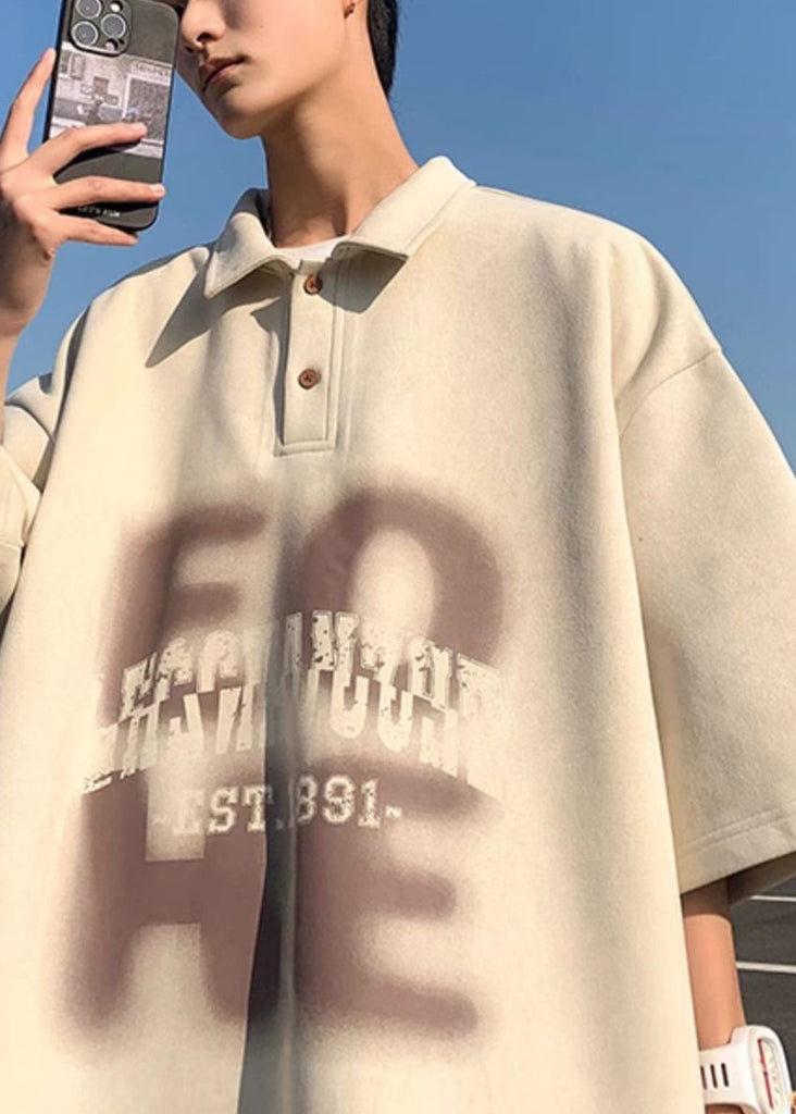 Polo Men Half Apricot Print French Cotton Sleeve Shirts Oversized