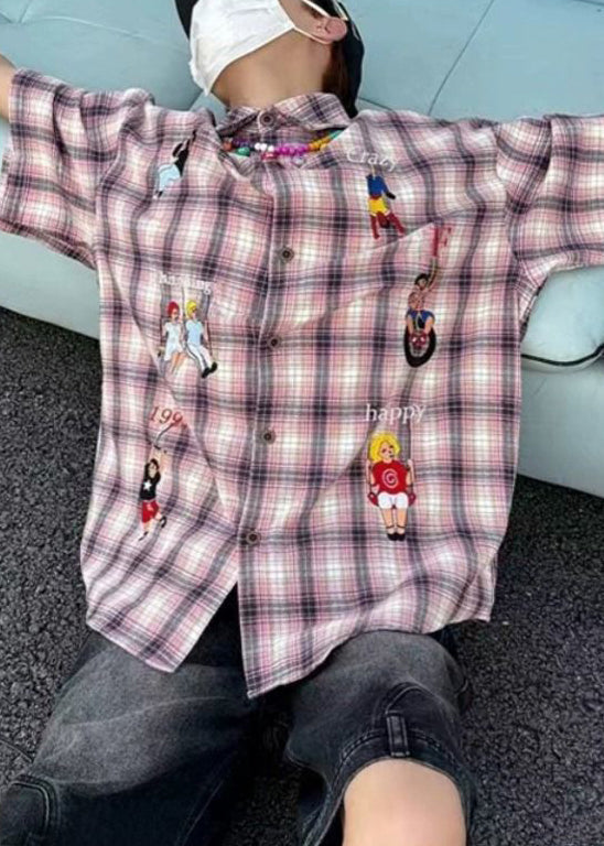 Classy Blue Plaid Print Button Cotton Men's Shirts Half Sleeve