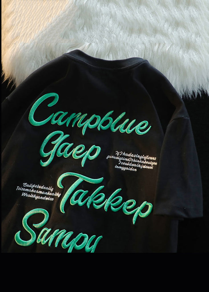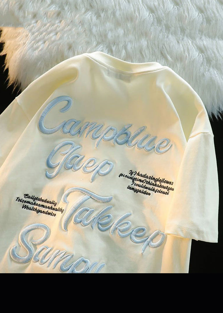 Modern Apricot Letter Embroideried Cotton T Shirts Men Apparel Summer