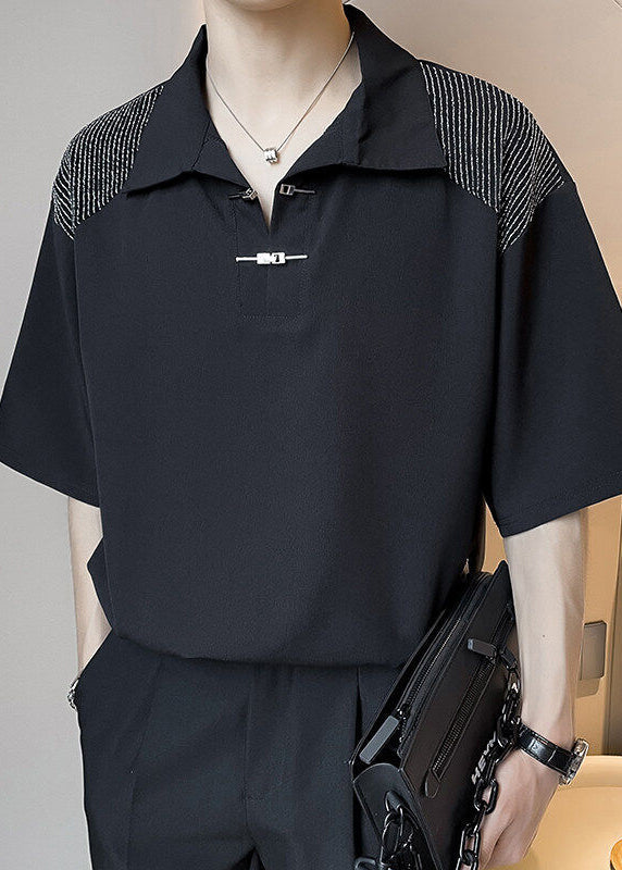 Art White Button Patchwork Ice Silk Polo Shirts Summer