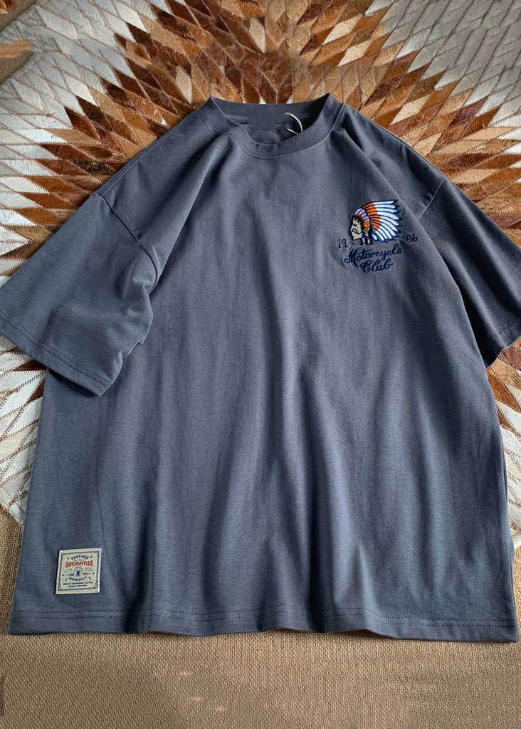 T Men Stylish Embroideried O-Neck Summer Cotton Shirt White FashionChic