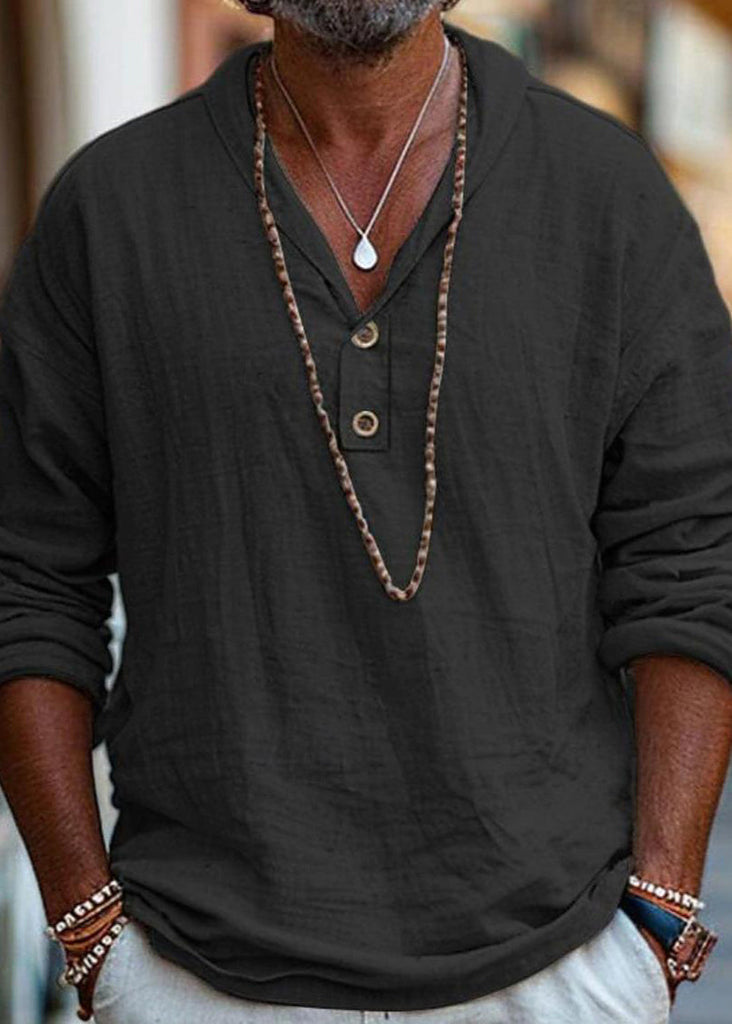 Simple Linen Button Solid Cotton Oversized Men T Shirts Fall