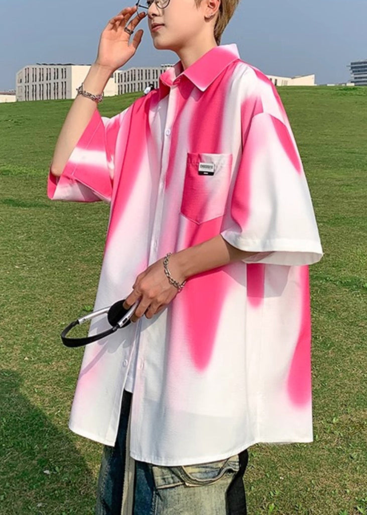 Stylish Blackish Green Tie Dye Pockets Cotton Men Shirts Half Sleeve
