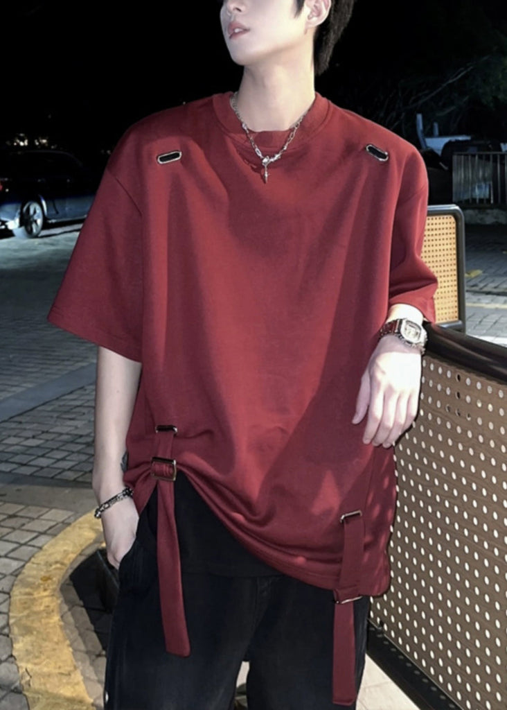 French Wine Red Original Design Solid Cotton Mens T Shirts Summer