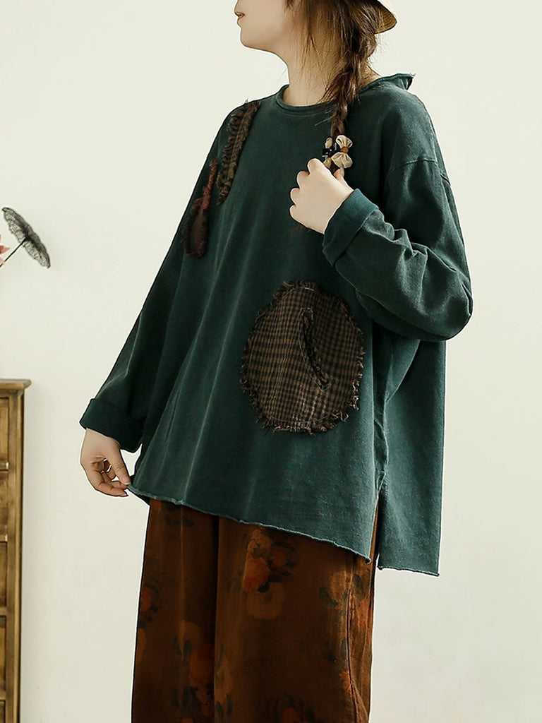 Women Casual Autumn Patchwork O-Neck Cotton Sweatshirt AX1041