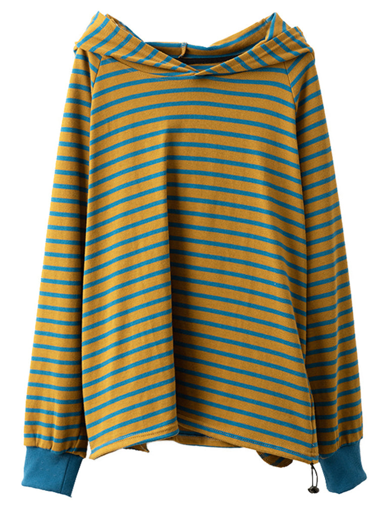 Women Casual Autumn Stripe Colorblock Hooded Sweatshirt AI1025