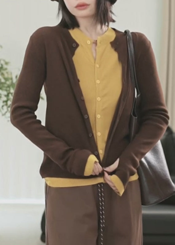Chic Purple O-Neck Button Fake Two Pieces Cotton Knit Sweater Winter RD018