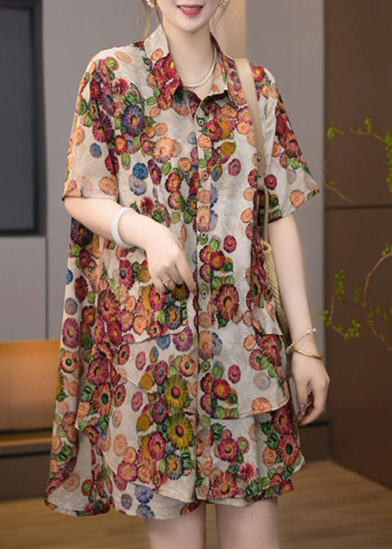 DIY Khaki Oversized Print Chiffon Two Pieces Set Summer YY007