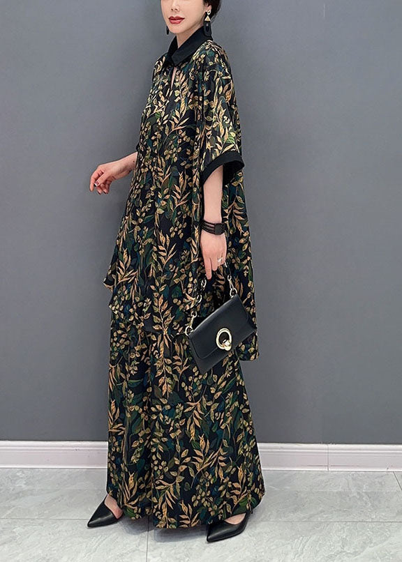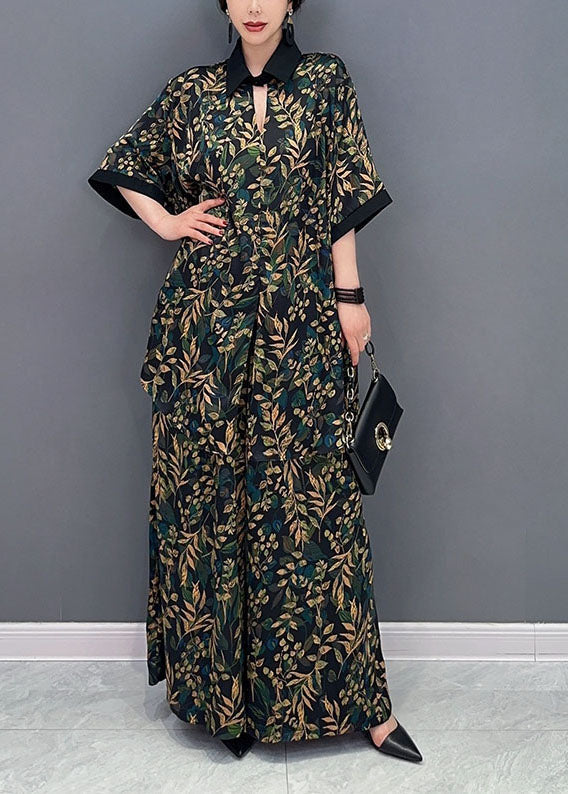 Elegant Blackish Green Oversized Print Chiffon Two Pieces Set Summer LY1588