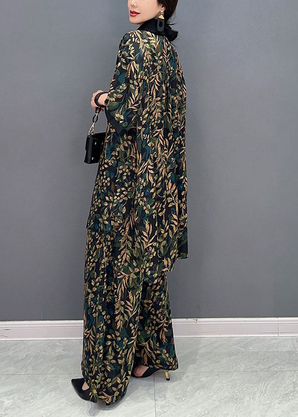 Elegant Blackish Green Oversized Print Chiffon Two Pieces Set Summer