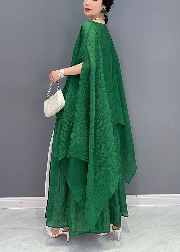 Green Asymmetrical Design Cotton Two Pieces Set Oversized Batwing Sleeve