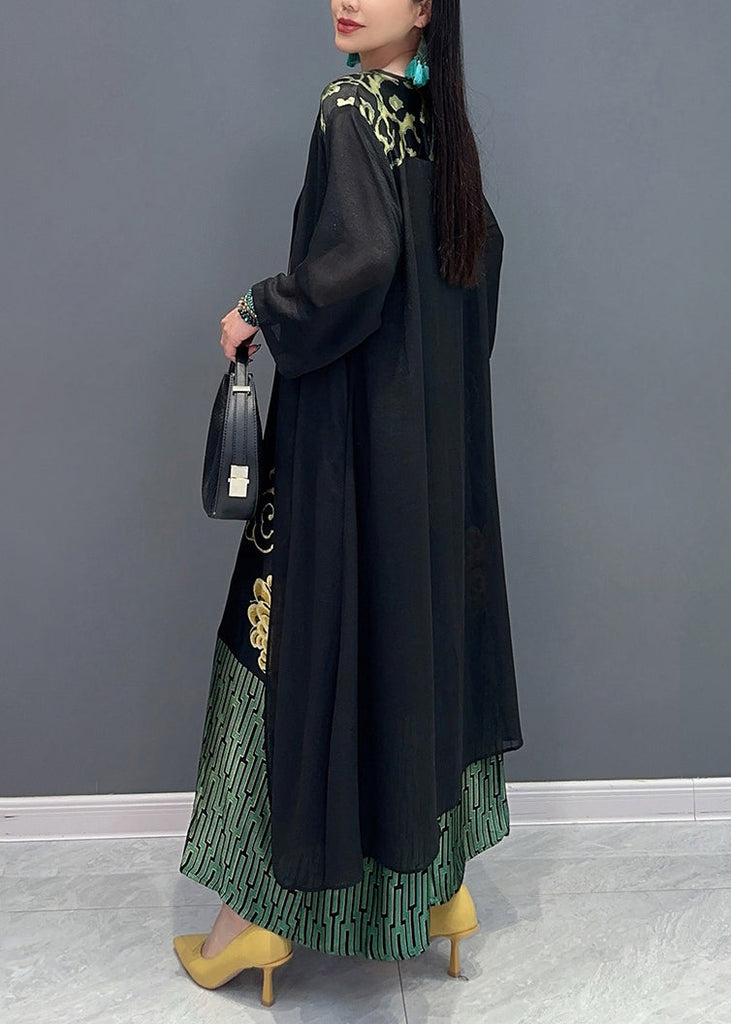 Loose Black V Neck Fake Two Piece Printed Dress For Summer AO1065