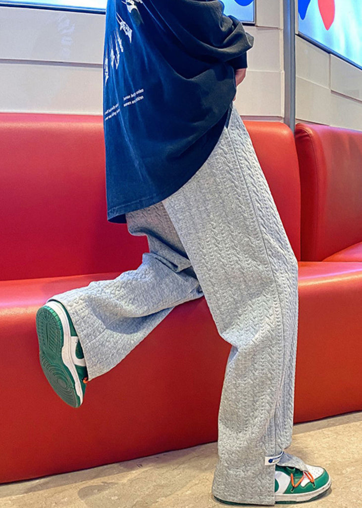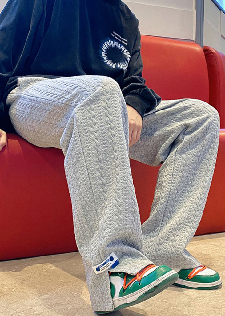 Simple Grey Pockets Side Open Solid Cotton Men Pants Fall WA060