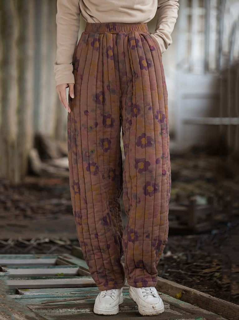 Women Winter Retro Flower Spliced Padded Cotton Harem Pants WU014
