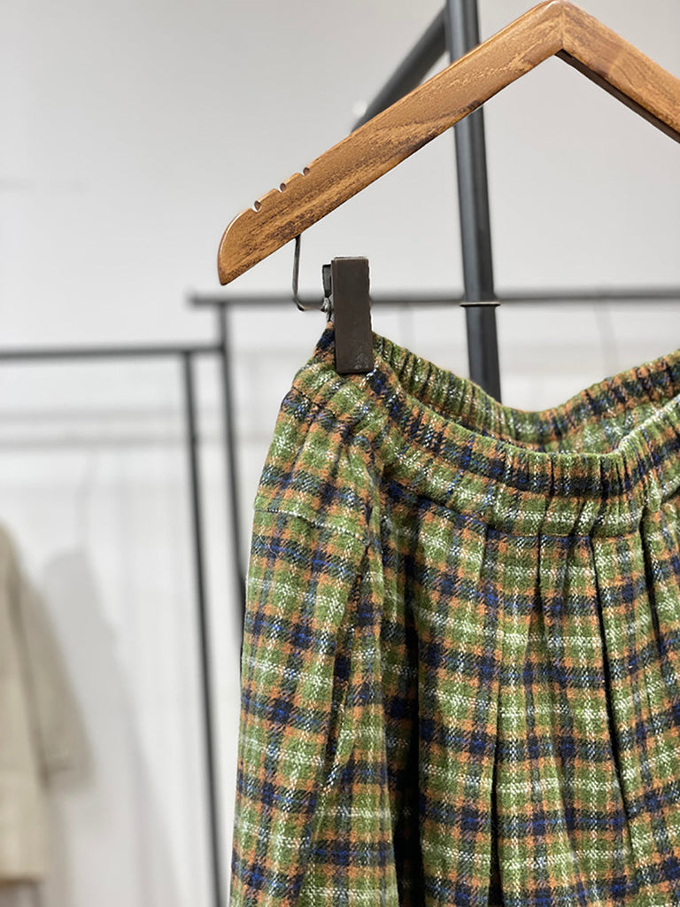 Women Winter Retro Plaid Cotton Wide-leg Pants QM024