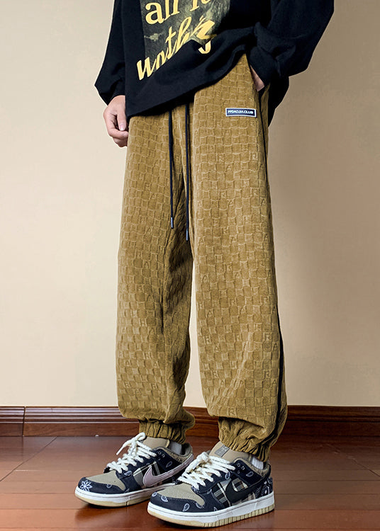 Yellow Pockets Cotton Fall Mens Beam Pants Elastic Waist WA063