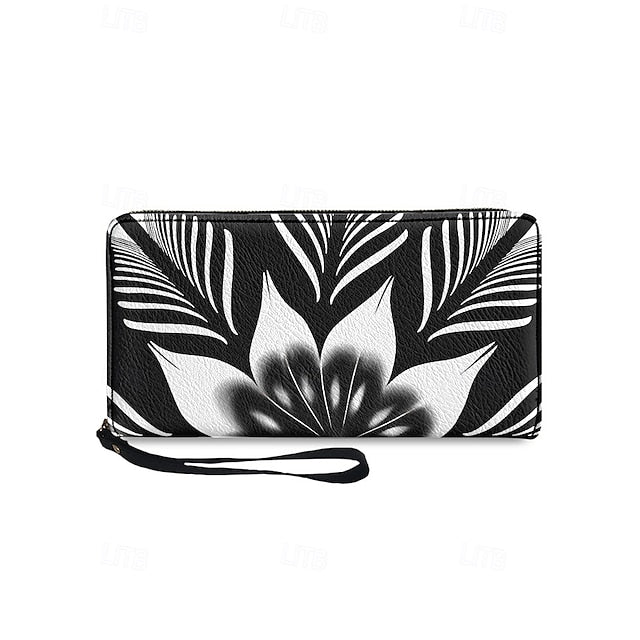 Women's Black and White Floral Print Wallet – Faux