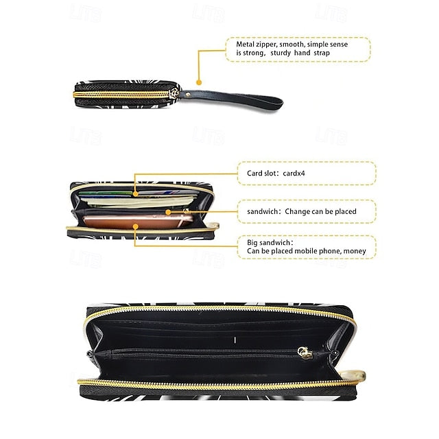 Gender: Women's, Type: Credit Card Holder Wallet, Coin Purse, Material: PU Leather, Embellishment: Zipper, Multiple pockets, Print, Pattern: National Totem, Occasion: Shopping, Casual Daily, Width (cm): 2, Height (cm): 11, Length (cm): 20, Function: Large Capacity, Durable, Category: Wallet,