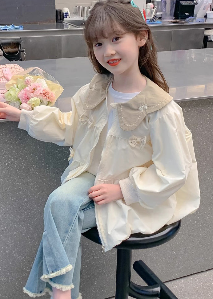 Modern White Peter Pan Collar Patchwork Bow Kids Jacket Fall QV046