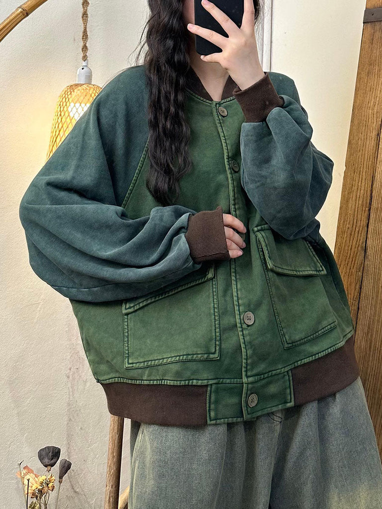 Women Autumn Casual Colorblock Cotton Baseball Jacket AV1005