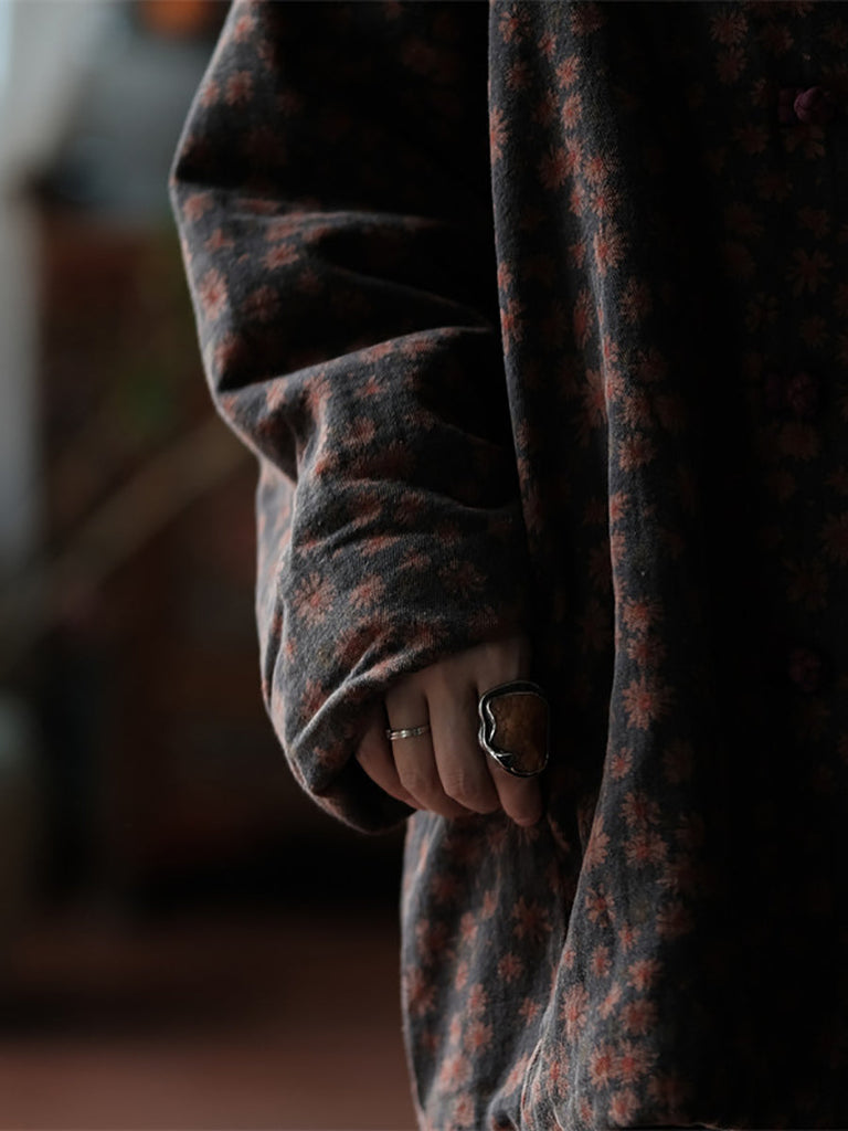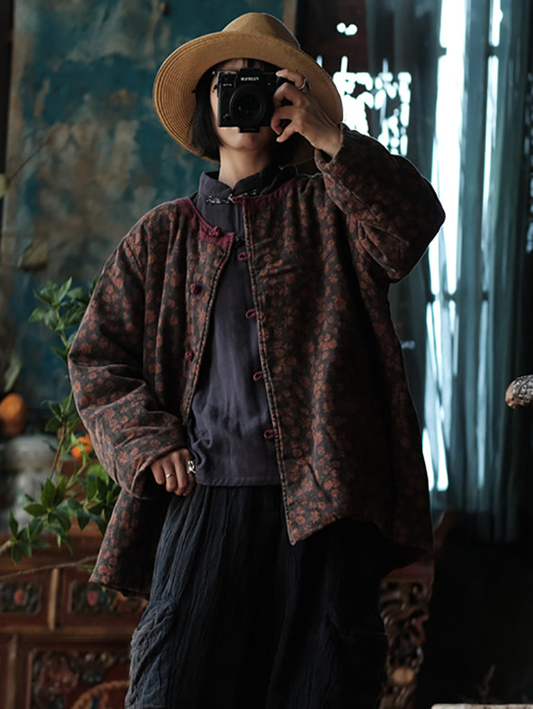 Women Autumn Floral Button O-Neck Cotton Jacket AS1023