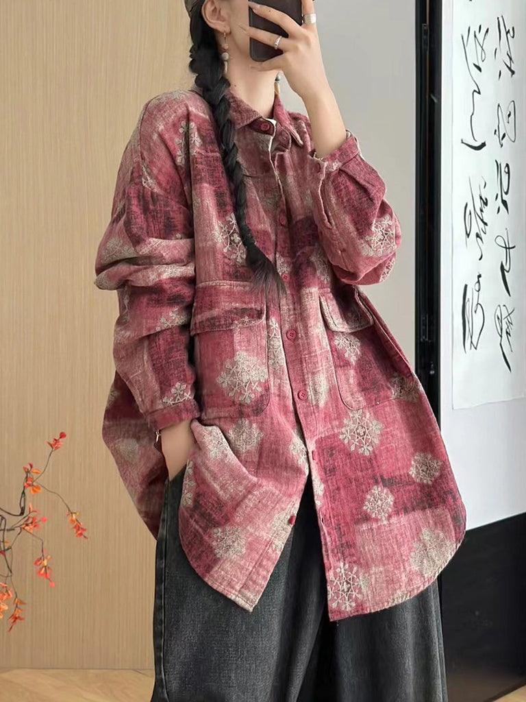 Women Autumn Snowflake Colorblock Cotton Jacket AH1057