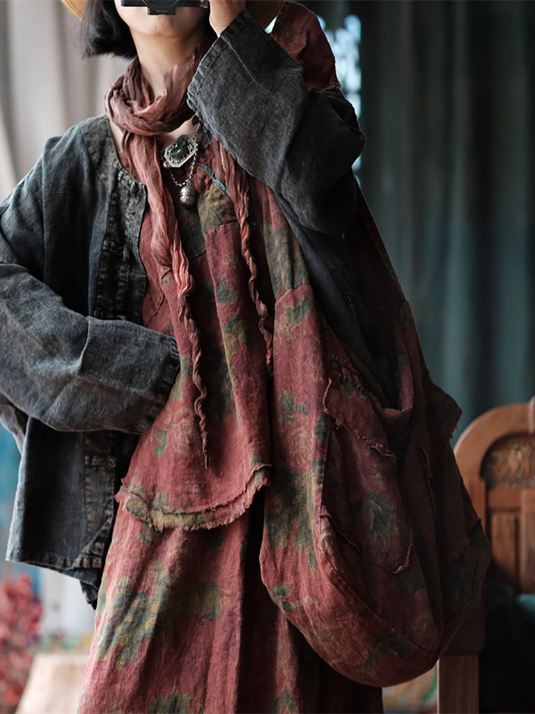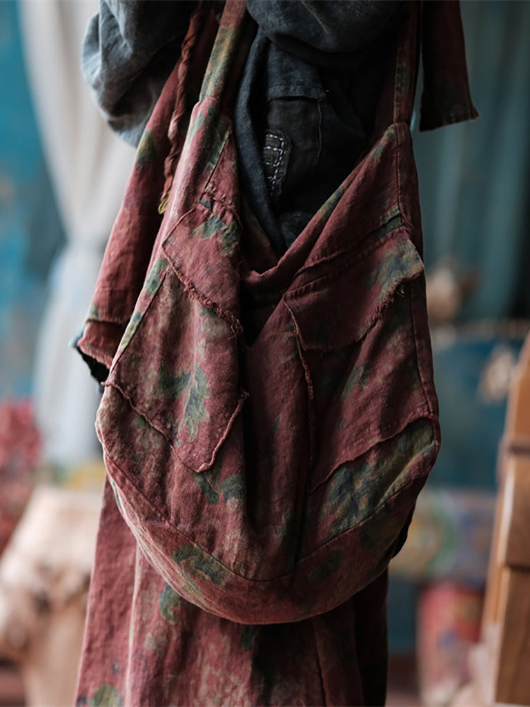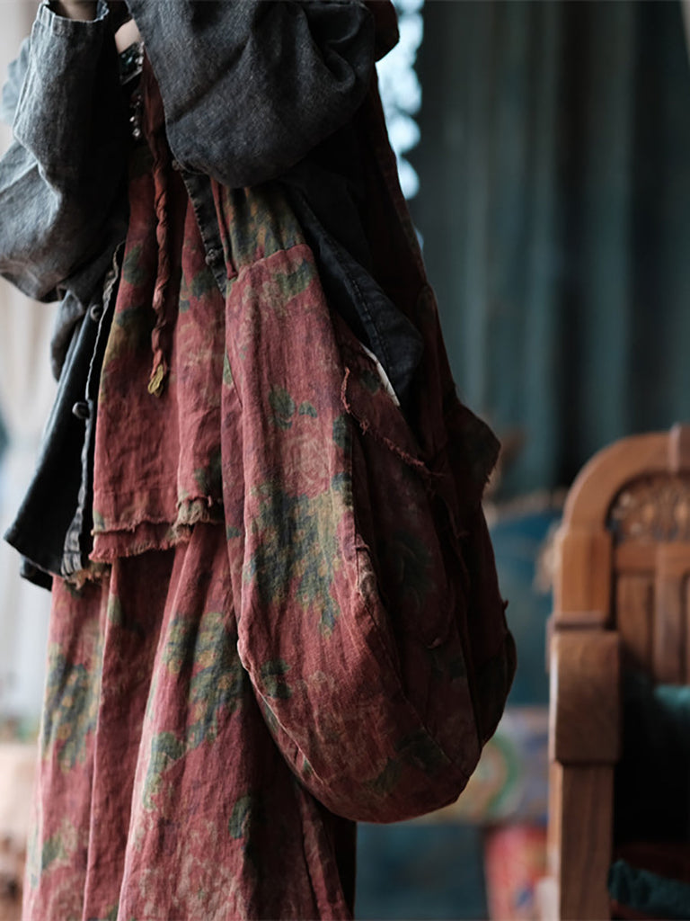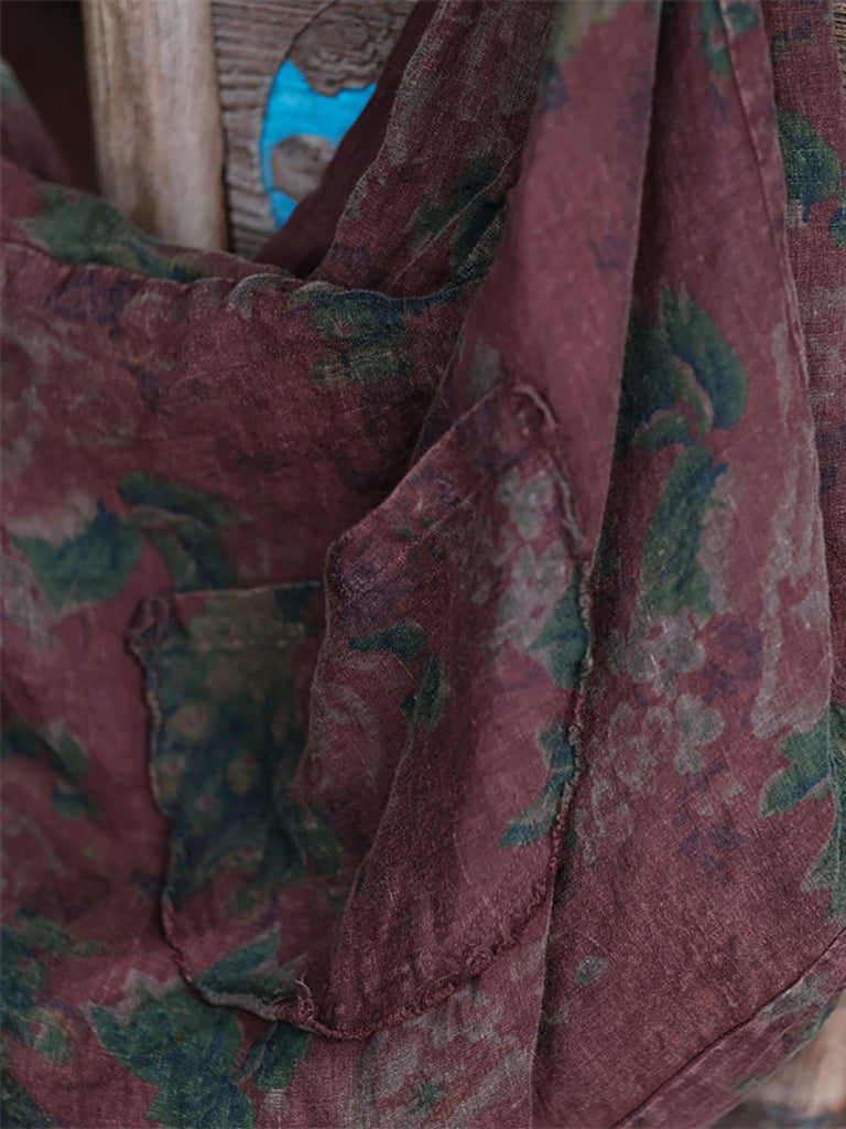 Sac bandoulière femme rétro à motif floral en lin AI1011