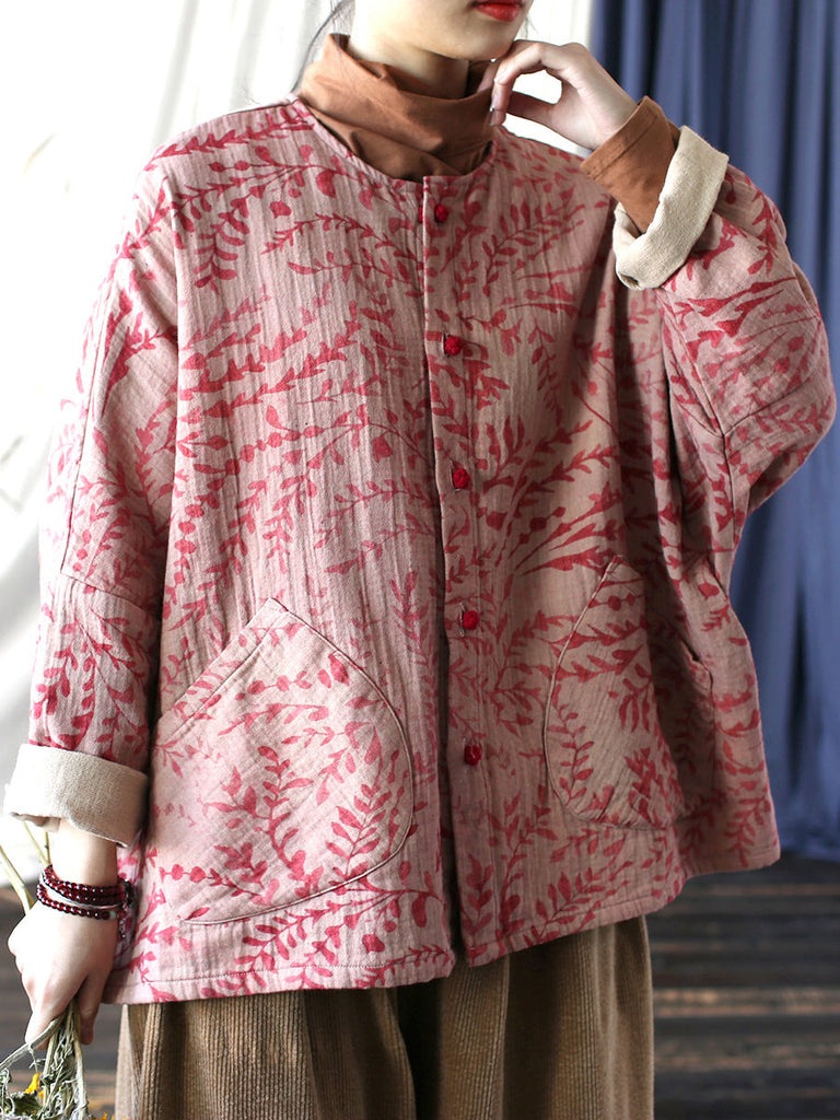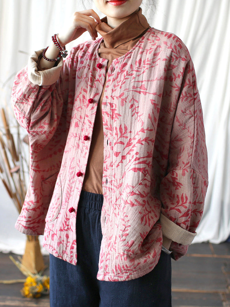 Chemisier en coton à col rond et motif feuilles artistiques pour femme AT1019