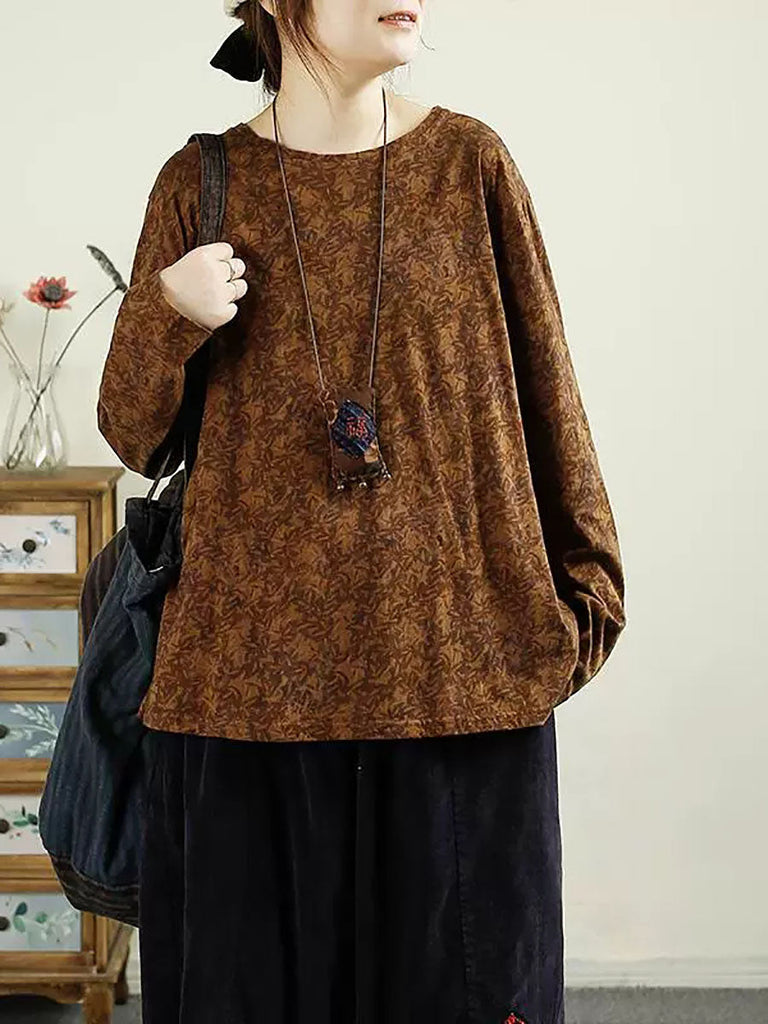 Chemisier en coton à col rond et motif floral d'automne pour femme AV1051
