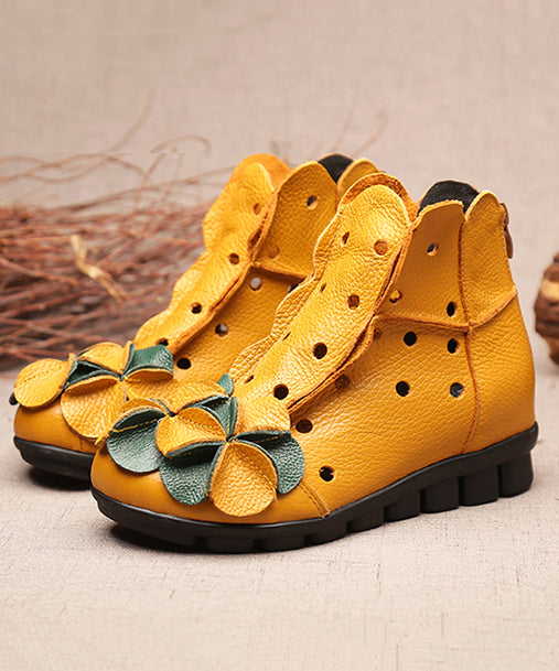 Sublimez vos pieds avec les luxueuses bottines Black Hollow Out, confectionnées en cuir de vachette de la plus haute qualité. Appréciez un confort incomparable grâce à leurs détails raffinés et leurs élégantes touches florales.