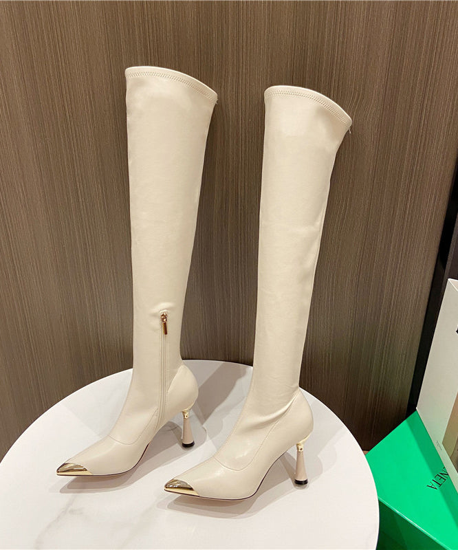Bottes hautes à talons aiguilles en similicuir noir, élégantes et fendues, TE001