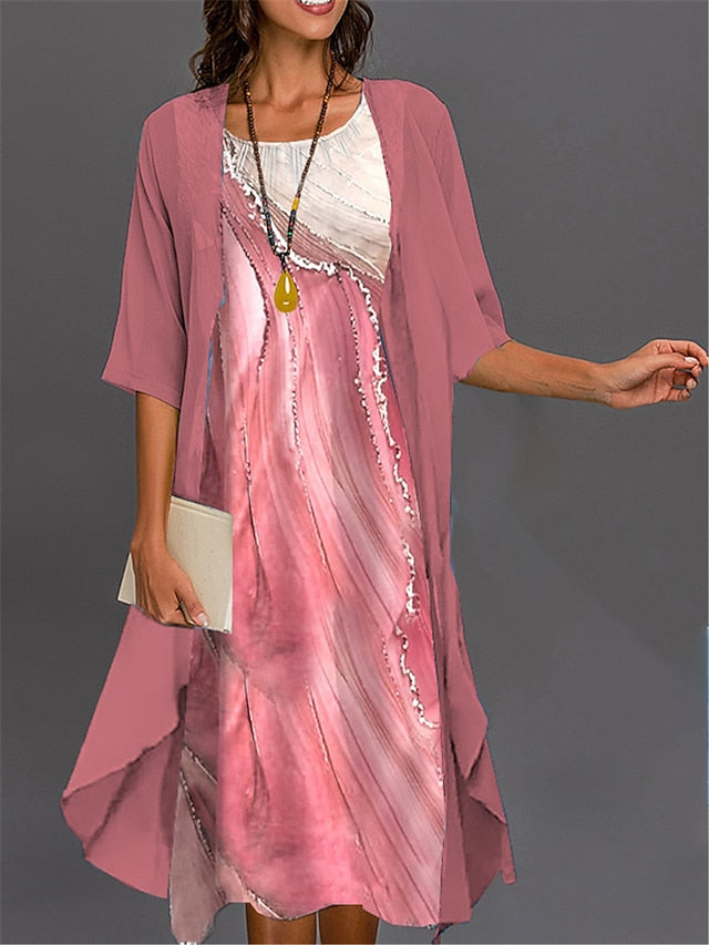 Women's Graduation Dress Midi Dress Two Piece Dress Set