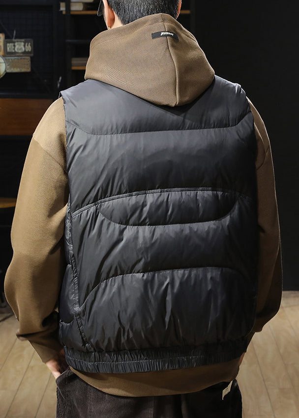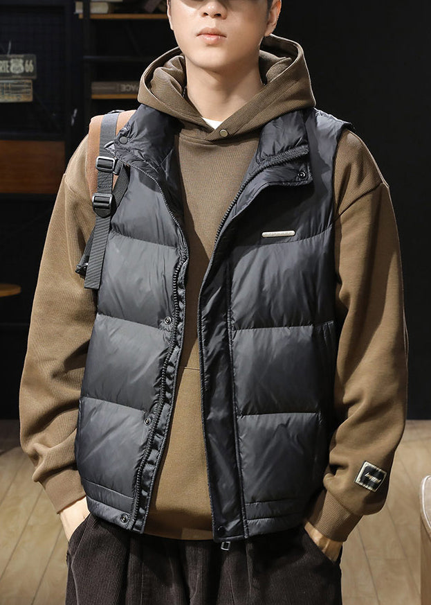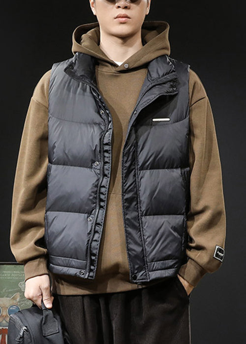 Gilet sans manches à boutons noirs pour homme, col montant, EQ021