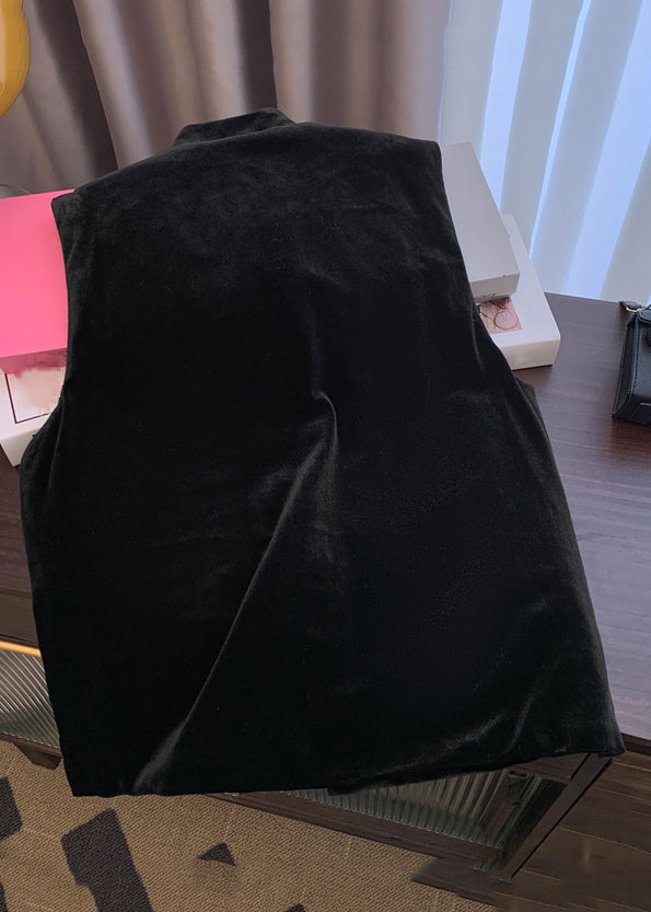 Gilet sans manches en velours de soie noir brodé à boutons, style chinois QO064