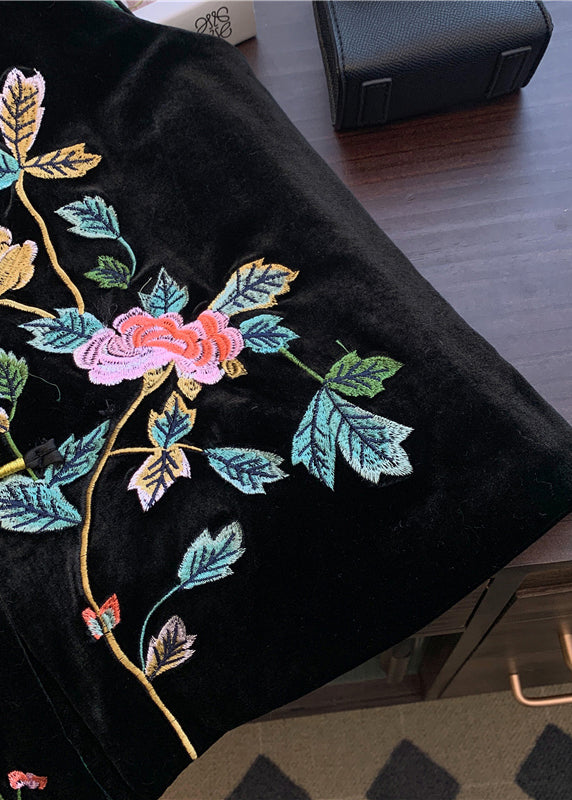 Chinese Style Black Embroidered Button Silk Velour Waistcoat Sleeveless QO064 MZF-CTS241008