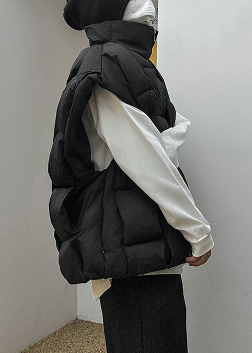 French Black Stand Collar Zip Up Cotton Filled Men Waistcoat Sleeveless EQ025 ABC