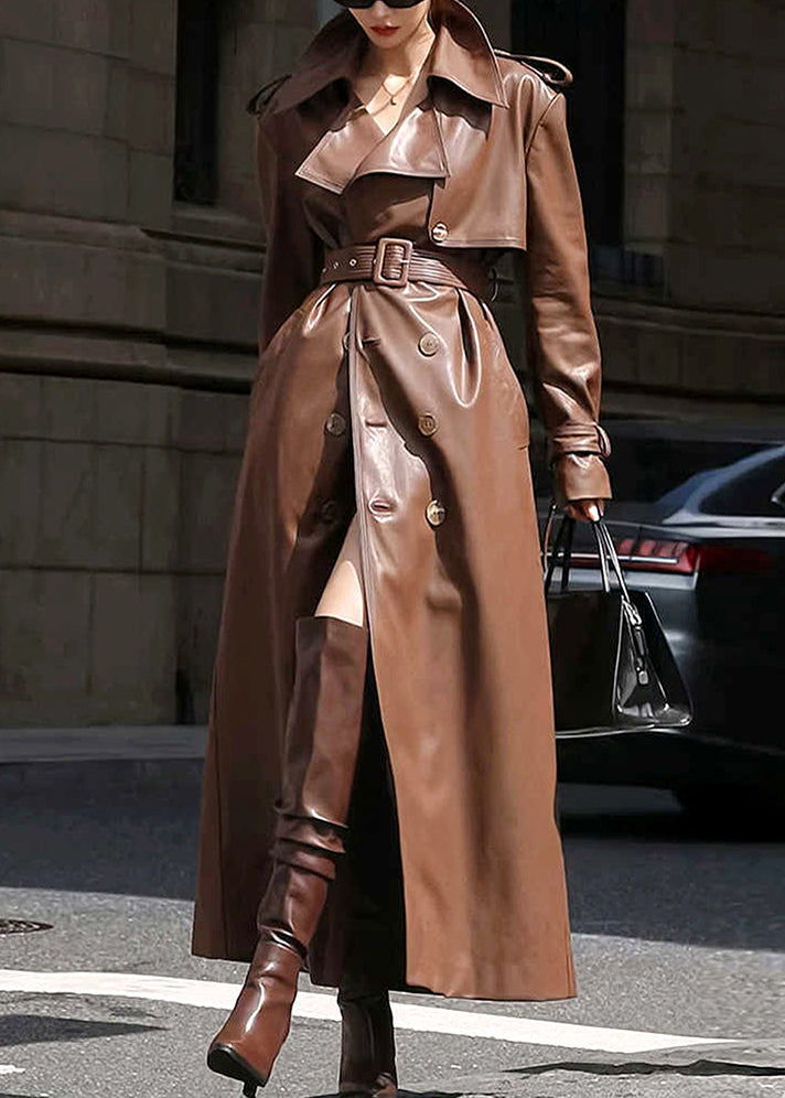 Offrez-vous un style luxueux avec notre trench-coat long en similicuir couleur café français à boutons crantés. La douceur incomparable du similicuir s'accorde à merveille avec le col cranté et les détails boutonnés, créant une allure intemporelle et sophistiquée pour l'hiver. Restez au chaud avec élégance grâce à cette pièce incontournable de la saison hivernale.