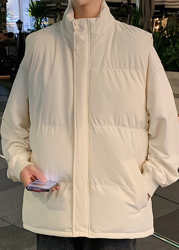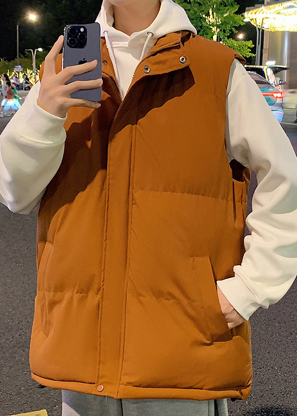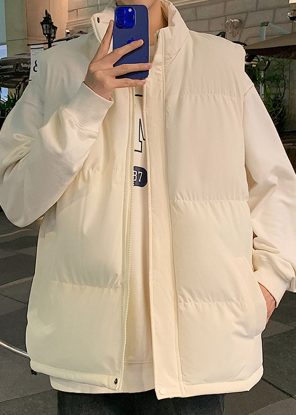 Simple Beige Stand Collar Pockets Cotton Filled Men Waistcoat Winter EQ028 ABC